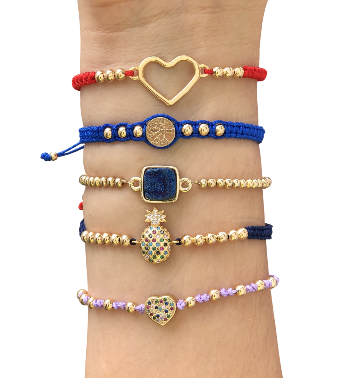 Pulseras ajustables y coloridas.